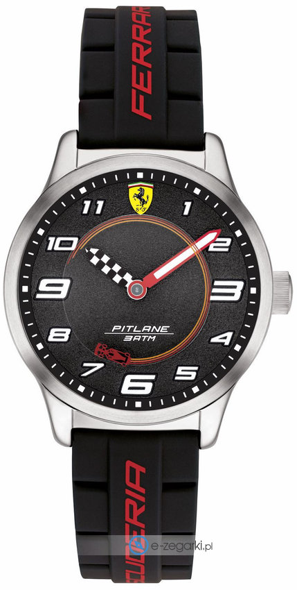 Model 860012 Pitlane marki Scuderia Ferrari to elegancki zegarek naręczny dziecięcy, który posiada pomysłowe rozwiązania oraz funkcje. Ciekawą budowę czasomierza osiągnięto dzięki tarczy w kolorze ciemnym. Zaprezentowana metodą analogową aktualna godzina jest czytelna i szybka do odczytania. Koperta jest w kolorze srebrnym szeroka jest na 34 mm oraz ma grubość 8,5 mm - cechuje się okrągłym kształtem.