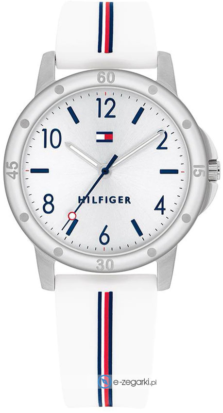Zegarek dziecięcy 1720014 marki Tommy Hilfiger to stylowe połączenie funkcjonalności i ciekawego designu. Model ten należy do serii Tommy Hilfiger Kids. Charakter zapewnia wysokiej jakości tarcza w kolorze białym. Zaprezentowana metodą analogową bieżąca godzina jest czytelna i szybka do odczytania. Koperta w barwach koloru stalowego szeroka jest na 32 mm oraz ma grubość 8 mm - posiada okrągły kształt.