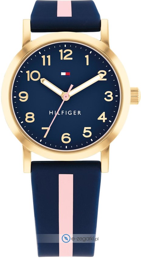 Tommy Hilfiger 1720037 - dziecięcy zegarek kierowany dla osób szukających zegarka z serii Tommy Hilfiger Kids. Atrakcyjny wygląd zegarka osiągnięto także dzięki tarczy w kolorze niebieskim. Zegarek ten prezentuje godzinę w formacie analogowym dzięki temu odczyt jest bezproblemowy. Koperta jest w kolorze złotym szeroka jest na 30 mm - w kształcie okrągłym.