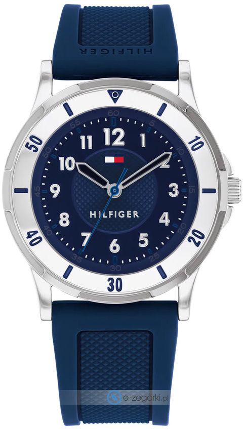 Zegarek dziecięcy 1720040 marki Tommy Hilfiger to stylowe połączenie funkcjonalności i modnego designu. Model ten należy do kolekcji Tommy Hilfiger Kids. Cyferblat zegarka jest w kolorze granatowym. Zegarek ten pokazuje aktualny czas w formacie analogowym dzięki temu odczyt jest bardzo łatwy. Koperta została pokryta kolorem stalowym szeroka jest na 34 mm - charakteryzuje się okrągłym kształtem.
