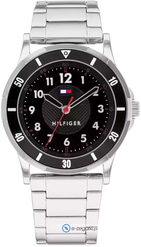 Model dziecięcy 1720042 marki Tommy Hilfiger należy do serii Tommy Hilfiger Kids. Charakter zapewnia wysokiej klasy cyferblat w kolorze czarnym. Zaprezentowana metodą analogową bieżąca godzina jest czytelna i łatwa do sprawdzenia. Koperta jest ozdobiona kolorem stalowym szeroka jest na 34 mm - cechuje się okrągłym kształtem.