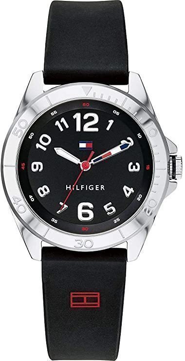 Zegarek dziecięcy 1791599 marki Tommy Hilfiger to stylowe połączenie funkcjonalności oraz modnego designu. Model ten w gamie pozostałych zegarków tego producenta występuje w serii Tommy Hilfiger Th Communion. Tarcza zegarka w kolorze czarnym. Koperta jest pokryta kolorem stalowym szeroka jest na 34 mm oraz ma grubość 9 mm - w kształcie okrągłym.