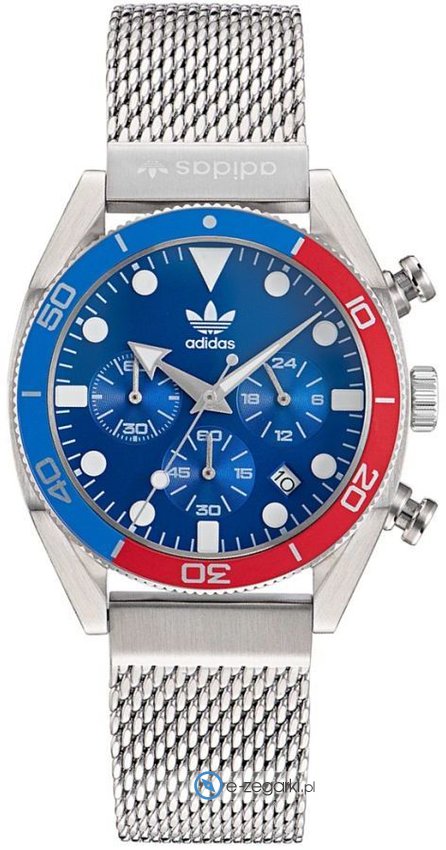 Zegarek męski AOFH22500 marki Adidas to idealne połączenie funkcjonalności i ciekawego designu. Atrakcyjną budowę czasomierza osiągnięto z pomocą tarczy w kolorze niebieskim. Zegarek ten pokazuje aktualny czas w formacie analogowym dzięki czemu odczyt jest bezproblemowy. Koperta jest ozdobiona kolorem srebrnym szeroka jest na 43 mm oraz ma grubość 12 mm - w kształcie okrągłym.