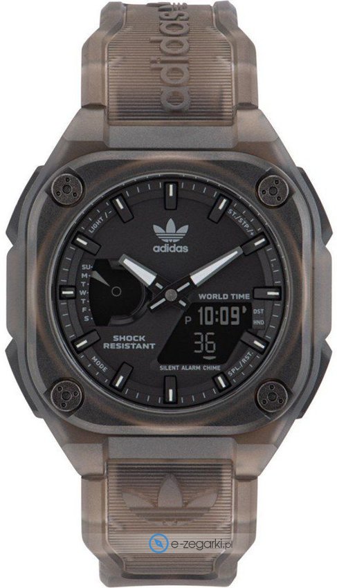 Zegarek męski AOST23059 marki Adidas to idealne połączenie funkcjonalności i modnego designu. Charakter zapewnia wysokiej klasy tarcza w kolorze czarnym. Aktualna godzina zaprezentowana jest w sposób analogowo - cyfrowy co bez trudu pozwala ją odczytać. Koperta w barwach koloru brązowego szeroka jest na 45 mm oraz ma grubość 13 mm - wyróżnia się okrągłym kształtem.