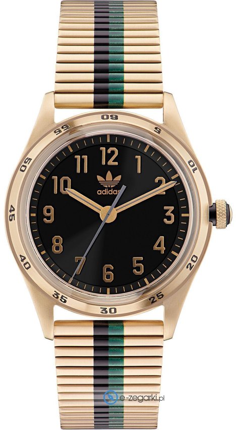 Zegarek męski AOSY22526 marki Adidas to stylowe połączenie funkcjonalności oraz ciekawego wzornictwa. Niestereotypowy wygląd zegarka osiągnięto m.in. poprzez tarczę w kolorze czarnym. Godzina pokazywana jest w sposób analogowy co bez trudu pozwala ją odczytać. Koperta została pokryta kolorem złotym szeroka jest na 42 mm oraz ma grubość 11 mm - wyróżnia się okrągłym kształtem.