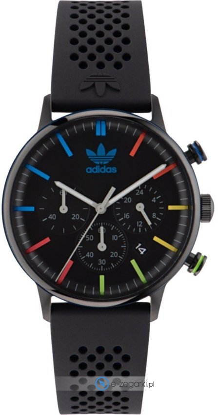 Model AOSY23021 marki Adidas to stylowy zegarek naręczny męski, który posiada pomysłowe rozwiązania i funkcje. Styl zapewnia wysokiej jakości cyferblat w kolorze czarnym. Zaprezentowana metodą analogową aktualna godzina jest czytelna i łatwa do odczytania. Koperta jest w kolorze czarnym szeroka jest na 40 mm oraz ma grubość 10 mm - ma okrągły kształt.