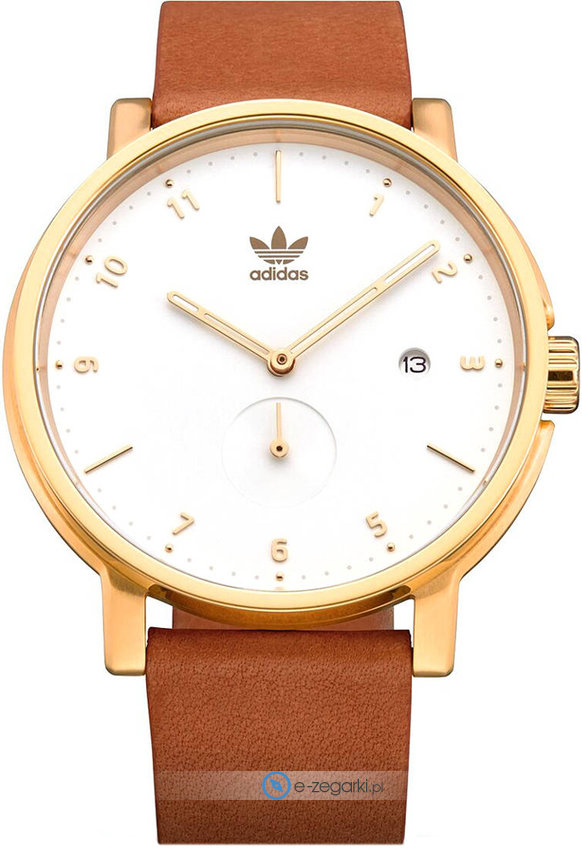Model męski Z12-2548 z serii Adidas District LX2 marki Adidas. Niestereotypowy wygląd czasomierza uzyskano m.in. poprzez cyferblat w kolorze białym. Zegarek ten prezentuje godzinę w formacie analogowym dzięki temu odczyt jest intuicyjny. Koperta w barwach koloru złotego szeroka jest na 40 mm oraz ma grubość 10 mm - w kształcie okrągłym.