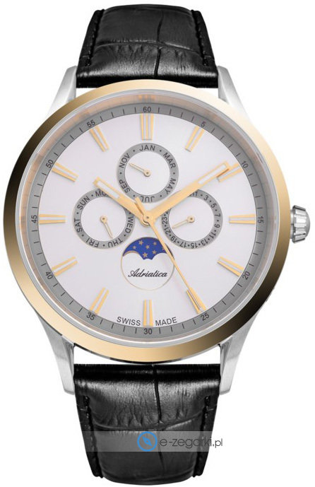 Model A8280.2213QF marki Adriatica to gustowny zegarek naręczny męski, który jest wyposażony w ciekawe rozwiązania oraz funkcje. Atrakcyjny wygląd zegarka uzyskano również dzięki tarczy w kolorze srebrnym. Zaprezentowana metodą analogową aktualna godzina jest czytelna i łatwa do sprawdzenia. Koperta w odcieniach koloru srebrnego szeroka jest na 44 mm oraz ma grubość 10 mm - w kształcie okrągłym.