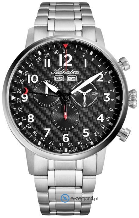 Model A8308.5124CH marki Adriatica to gustowny zegarek naręczny męski, który wyposażono w pomysłowe rozwiązania oraz funkcje. Charakterystyczną konstrukcję zegarka uzyskano dzięki tarczy w kolorze czarnym. Pokazana metodą analogową aktualna godzina jest czytelna i szybka do sprawdzenia. Koperta jest ozdobiona kolorem srebrnym szeroka jest na 45 mm oraz ma grubość 11 mm - ma okrągły kształt.