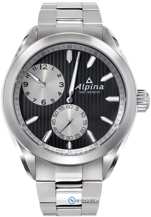Alpina to marka z długoletnią historią sięgającą aż 1883 roku, w dzisiejszych czasach siedzibę ma w szwajcarskiej Genevie. Czasomierze Alpina dzielą się na kilka rodzajów, wśród których wyróżnić można zegarki sportowe i klasyczne. W tym miejscu należy także dodać, że to marka Alpina jest prekursorem w dziedzinie produkcji szwajcarskich zegarków zaawansowanych technologicznie. Oczywiście zegarki tego producenta jak przystało na swoje korzenie wykonane są z najwyższej jakości materiałów jakie można spotkać w czasomierzach. Kupując w naszym sklepie zegarek Alpina masz 100% pewności, że pochodzi on z oficjalnej dystrybucji i objęty jest certyfikatem oraz gwarancją producenta.