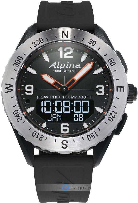Zegarek męski AL-283LBBO5SAQ6 marki Alpina to dobre połączenie funkcjonalności oraz modnego wzornictwa. Model ten występuje w serii Alpina AlpinerX. Styl zapewnia wysokiej jakości tarcza w kolorze czarnym. Zegarek ten prezentuje godzinę w formacie analogowo - cyfrowym dzięki czemu odczyt jest bardzo łatwy. Koperta szeroka jest na 45 mm - posiada okrągły kształt.