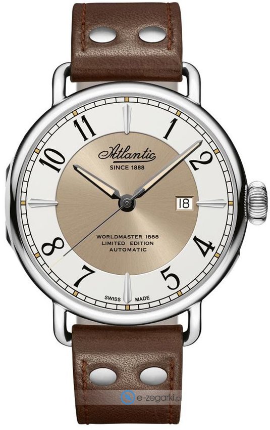 Model 57750.41.25B Worldmaster 130TH Anniversary marki Atlantic to gustowny zegarek naręczny męski, który jest wyposażony w pomysłowe rozwiązania oraz funkcje. Zegarek ten prezentuje godzinę w formacie analogowym dzięki czemu odczyt jest bardzo łatwy. Koperta została ozdobiona kolorem srebrnym szeroka jest na 44 mm oraz ma grubość 10 mm - charakteryzuje się okrągłym kształtem.