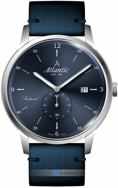 Zegarek męski 65353.41.55 marki Atlantic to idealne połączenie funkcjonalności i ciekawego wzornictwa. Styl zapewnia wysokiej jakości tarcza w kolorze niebieskim. Aktualna godzina przedstawiona jest w sposób analogowy co bez trudu pozwala ją odczytać. Koperta jest ozdobiona kolorem srebrnym szeroka jest na 42 mm oraz ma grubość 10 mm - w kształcie okrągłym.