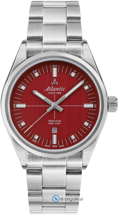 Męski zegarek Atlantic 73366.41.91 to zegarek, który dzięki swemu wzornictwu zawsze będzie prezentował się dobrze. Cyferblat zegarka jest w kolorze czerwonym. Godzina zaprezentowana jest w sposób analogowy co intuicyjnie pozwala ją odczytać. Koperta została ozdobiona kolorem srebrnym szeroka jest na 40 mm oraz ma grubość 9 mm - w kształcie okrągłym.