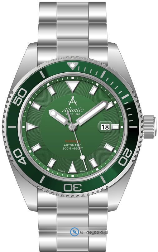Męski zegarek Atlantic 80779.41.71 to zegarek, który dzięki swemu wzornictwu zawsze będzie prezentował się dobrze. Stylu nadaje wysokiej jakości cyferblat w kolorze zielonym. Zegarek ten pokazuje aktualny czas w formacie analogowym dzięki temu odczyt jest bardzo łatwy. Koperta w odcieniach koloru srebrnego szeroka jest na 44 mm oraz ma grubość 12 mm - posiada okrągły kształt.