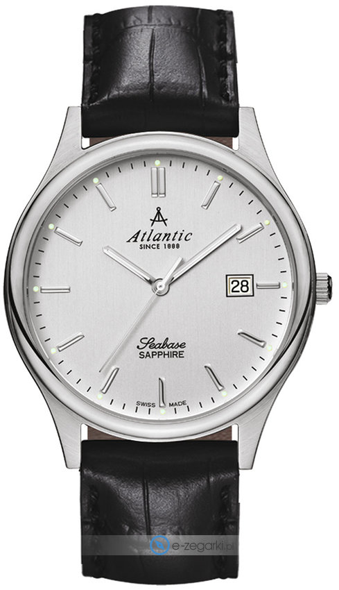 Męski zegarek 60342.41.21 z kolekcji Atlantic Seabase marki Atlantic to połączenie stylu oraz nowatorskich mechanizmów. Wysokiej jakości cyferblat zegarka pokryto srebrnym kolorem. Godzina zaprezentowana jest w sposób analogowy co intuicyjnie pozwala ją odczytać. Koperta została pokryta kolorem srebrnym szeroka jest na 40 mm oraz ma grubość 8 mm - w kształcie okrągłym.