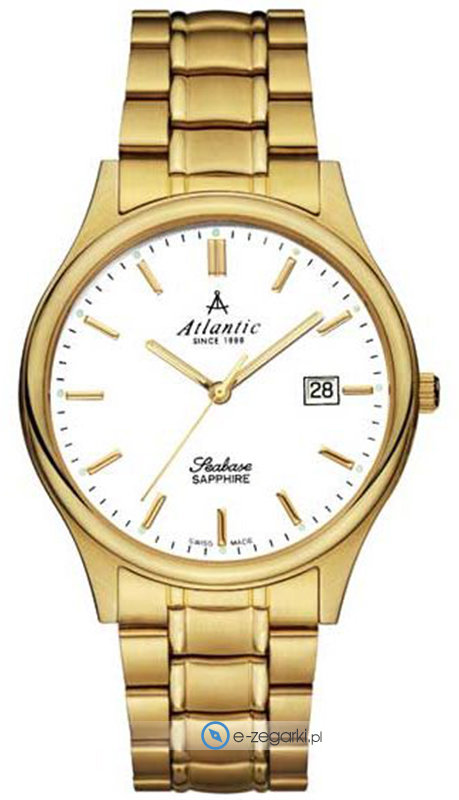 Atlantic 60347.45.11 to męski zegarek przeznaczony dla osób szukających zegarka z serii Atlantic Seabase. Niestereotypowy wygląd zegarka osiągnięto także dzięki tarczy w kolorze białym. Godzina pokazywana jest w sposób analogowy co niezmiernie łatwo pozwala ją odczytać. Koperta w odcieniach koloru złotego szeroka jest na 40 mm oraz ma grubość 8 mm - w kształcie okrągłym.