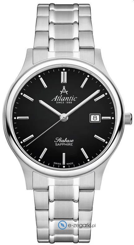 Męski zegarek 60348.41.61 z serii Atlantic Seabase marki Atlantic to połączenie estetyki i pomysłowych funkcji. Ciekawą budowę zegarka uzyskano dzięki tarczy w kolorze czarnym. Zegarek ten prezentuje aktualny czas w formacie analogowym dzięki czemu odczyt jest bardzo łatwy. Koperta w odcieniach koloru srebrnego szeroka jest na 40 mm oraz ma grubość 8 mm - w kształcie okrągłym.