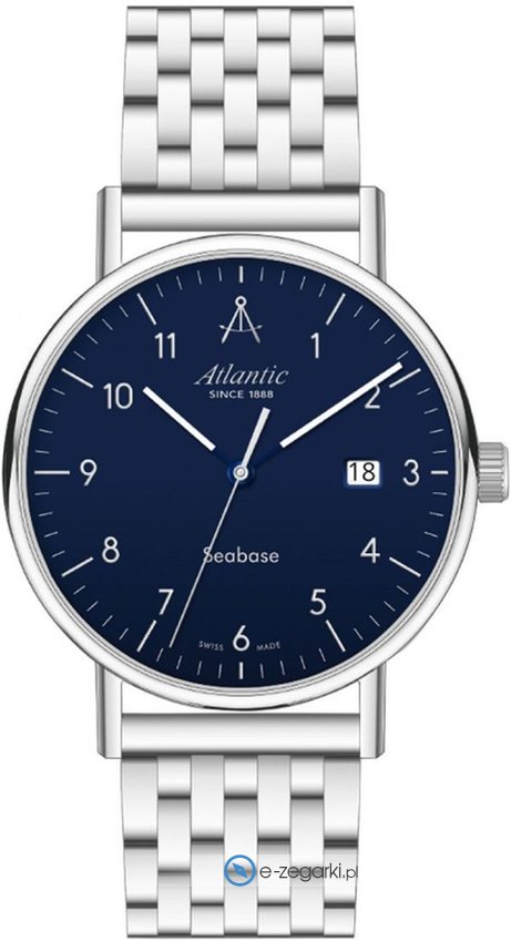 Atlantic 60357.41.55 to męski zegarek kierowany dla osób szukających zegarka z serii Atlantic Seabase. Godzina zaprezentowana jest w sposób analogowy co bez trudu pozwala ją odczytać. Koperta szeroka jest na 40 mm oraz ma grubość 7 mm - ma okrągły kształt.