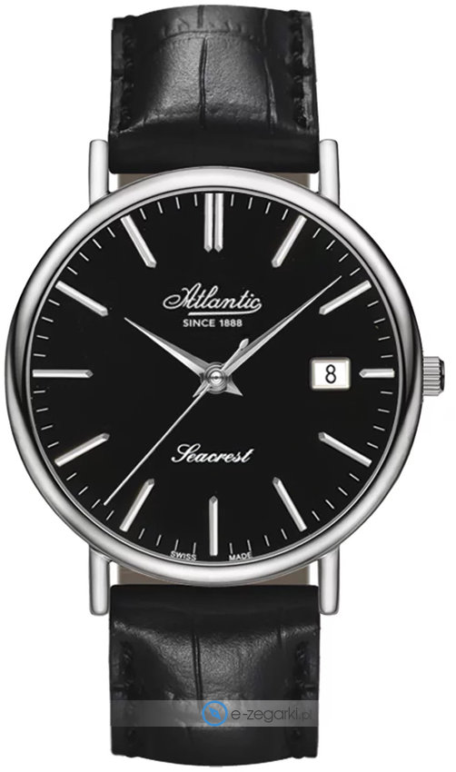 Zegarek męski 50354.41.61 marki Atlantic to dobre połączenie funkcjonalności a także modnego wzornictwa. Model ten jest z serii Atlantic Seacrest. Ciekawą stylistykę czasomierza osiągnięto z pomocą tarczy w kolorze czarnym. Zaprezentowana metodą analogową aktualna godzina jest czytelna i szybka do sprawdzenia. Koperta jest w kolorze srebrnym szeroka jest na 42 mm oraz ma grubość 8 mm - w kształcie okrągłym.