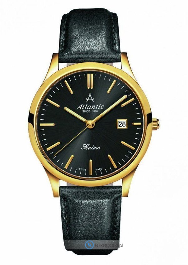 Zegarek męski 62341.45.61 marki Atlantic to idealne połączenie funkcjonalności i modnego wzornictwa. Model ten w gamie innych zegarków tego producenta występuje w kolekcji Atlantic Sealine. Tarcza zegarka w kolorze czarnym. Pokazana metodą analogową aktualna godzina jest czytelna i prosta do odczytania. Koperta jest w kolorze złotym szeroka jest na 40 mm oraz ma grubość 8 mm - ma okrągły kształt.