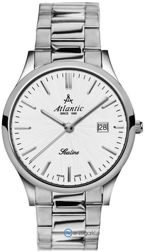 Zegarek męski 62346.41.21 marki Atlantic to dobre połączenie funkcjonalności a także ciekawego wzornictwa. Model ten w gamie innych zegarków tego producenta występuje w serii Atlantic Sealine. Tarcza zegarka w kolorze srebrnym. Zegarek ten pokazuje aktualny czas w formacie analogowym dzięki czemu odczyt jest intuicyjny. Koperta jest w kolorze srebrnym szeroka jest na 40 mm oraz ma grubość 8 mm - w kształcie okrągłym.