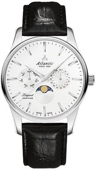 Zegarek męski 56550.41.21 marki Atlantic to stylowe połączenie funkcjonalności i ciekawego designu. Model ten w gamie innych zegarków tego producenta występuje w kolekcji Atlantic Seaport. Stylu nadaje wysokiej jakości cyferblat w kolorze białym. Godzina przedstawiona jest w sposób analogowy co niezmiernie łatwo pozwala ją odczytać. Koperta jest w kolorze srebrnym szeroka jest na 41 mm oraz ma grubość 11 mm - charakteryzuje się okrągłym kształtem.
