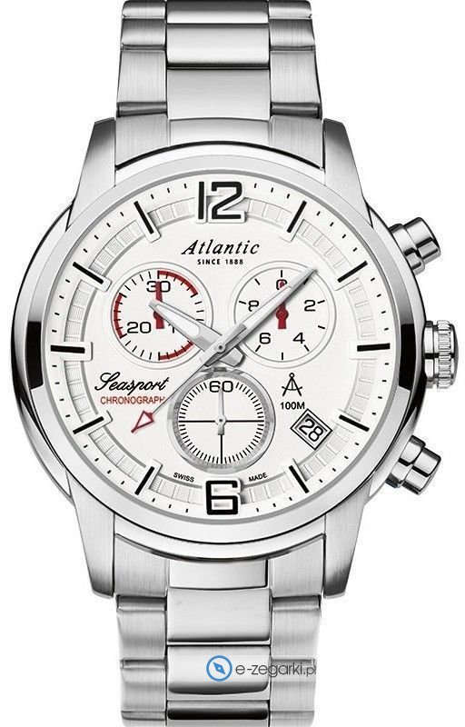 Męski zegarek 87466.41.25 z kolekcji Atlantic Seasport marki Atlantic to połączenie stylu oraz nieprzeciętnych funkcji. Wysokiej jakości tarczę zegarka pokryto białym kolorem. Godzina przedstawiona jest w sposób analogowy co niezmiernie łatwo pozwala ją odczytać. Koperta została pokryta kolorem srebrnym szeroka jest na 46 mm oraz ma grubość 14 mm - w kształcie okrągłym.
