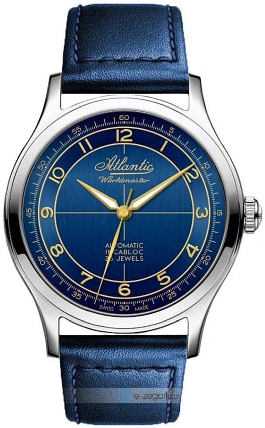 Męski zegarek Atlantic 53780.41.53G to zegarek, który dzięki swemu wzornictwu zawsze będzie prezentował się dobrze. Niebanalny wygląd zegarka osiągnięto m.in. poprzez cyferblat w kolorze niebieskim. Zaprezentowana metodą analogową aktualna godzina jest czytelna i łatwa do odczytania. Koperta jest w kolorze srebrnym szeroka jest na 39 mm - charakteryzuje się okrągłym kształtem.