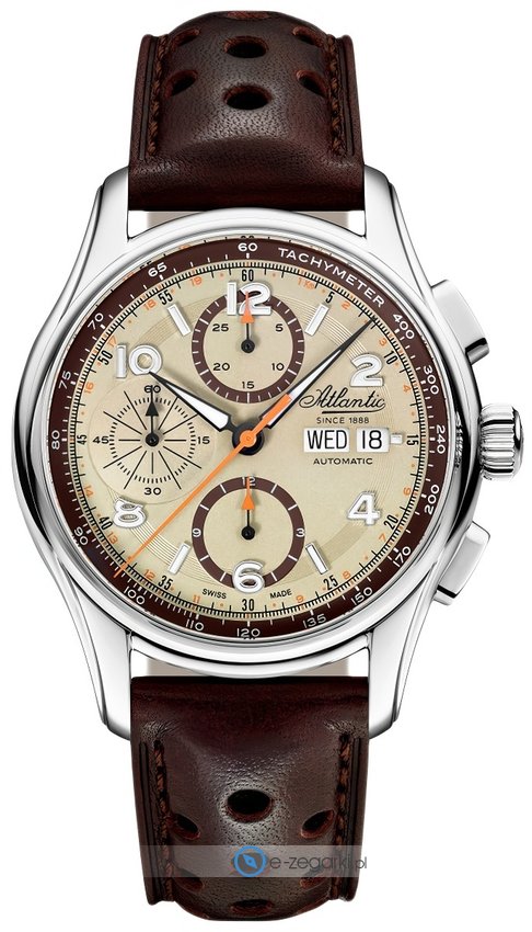 Zegarek 55853.41.95 marki Atlantic to elegancki zegarek naręczny męski, który jest wyposażony w pomysłowe rozwiązania oraz funkcje. Model ten jest z serii Atlantic Worldmaster. Wysokiej jakości tarczę zegarka ozdobiono beżowym kolorem. Godzina zaprezentowana jest w sposób analogowy co intuicyjnie pozwala ją odczytać. Koperta w odcieniach koloru srebrnego szeroka jest na 42 mm - wyróżnia się okrągłym kształtem.