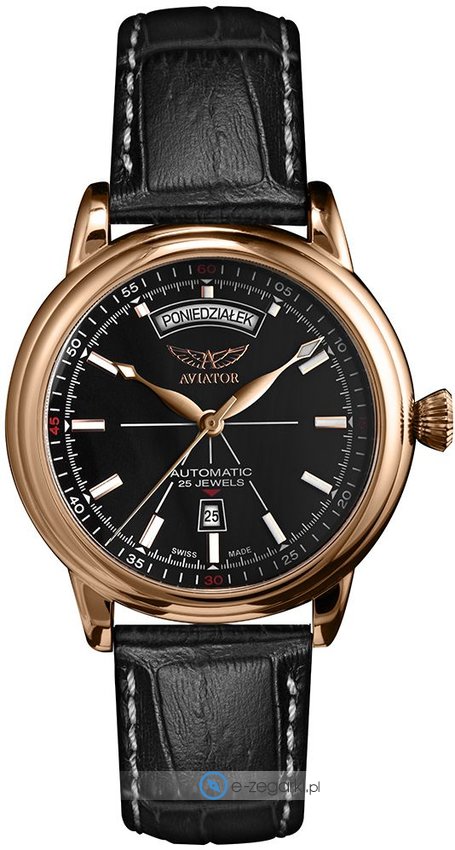 Swiss Made Watches - Aviator. To musi budzić dumę oraz unikalność, dokładnie takie są zegarki Aviator. Ta pochodząca ze szwajcarii marka zegarków całym swoim sposobem myślenia oddaje się lotnictwu. Dlatego właśnie wybrane statki powietrzne są najważniejszą myślą przewodnią przy projektowaniu oraz produkcji zegarków. Oczywiście materiały wykorzystane do produkcji zegarków są najwyższej możliwej klasy, nie może być tu miejsca na odstępstwa w końcu samolot nie wybacza błędów. Przy tworzeniu zegarków Aviator stale brane są pod uwagę doświadczenia byłych i obecnych kapitanów oraz wielbicieli lotnictwa dokładnie dlatego, aby zegarki Aviator całą swoją świadomością oddawały swój unikalny charakter. Gdy przyjrzymy się indeksom, cyfrom i innym detalom na tarczy lub deklu zegarka nie trudno zobaczyć elementy pochodzące prosto z zegarów lub innych wątków lotniczych. Modne wzornictwo nawiązujące linią do wybranej kolekcji w pełni oddaje nieszablonowość marki na tle zegarków innych producentów. Jako autoryzowany reprezentant marki w naszym kraju gwarantujemy dystrybucję oryginalnych zegarków objętych gwarancją producenta.