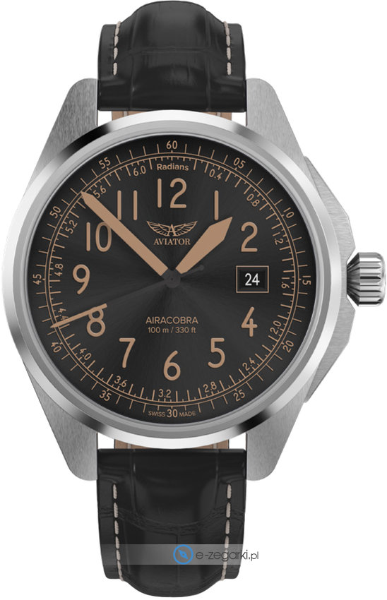 Model V.1.38.0.323.4 marki Aviator to elegancki zegarek naręczny męski, który wyposażono w pomysłowe rozwiązania i funkcje. Charakter zapewnia wysokiej jakości cyferblat w kolorze czarnym. Pokazana metodą analogową aktualna godzina jest czytelna i prosta do odczytania. Koperta jest w kolorze srebrnym szeroka jest na 43 mm oraz ma grubość 10 mm - w kształcie okrągłym.