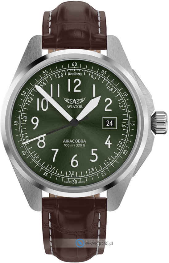 Męski zegarek Aviator V.1.38.0.324.4 to zegarek, który dzięki swemu wzornictwu zawsze będzie prezentował się dobrze. Charakterystyczny wygląd zegarka osiągnięto także dzięki tarczy w kolorze zielonym. Pokazana metodą analogową bieżąca godzina jest czytelna i łatwa do odczytania. Koperta jest w kolorze srebrnym szeroka jest na 43 mm oraz ma grubość 10 mm - w kształcie okrągłym.