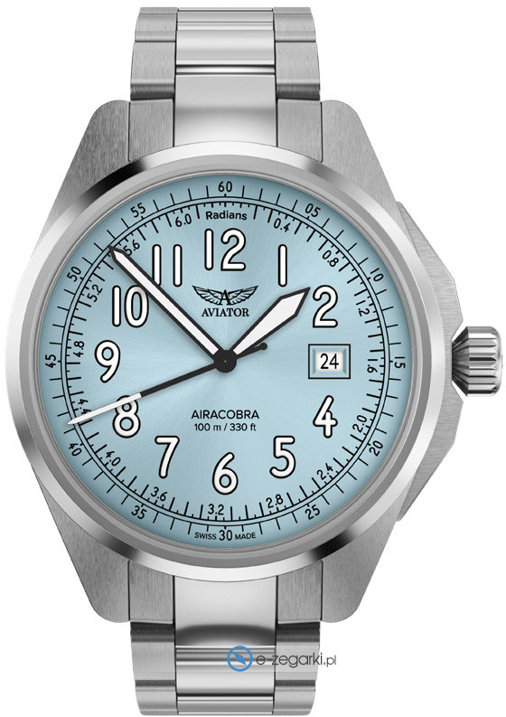 Męski zegarek Aviator V.1.38.0.328.5 to zegarek, który dzięki swemu wzornictwu zawsze będzie prezentował się dobrze. Wysokiej jakości cyferblat zegarka pokryto niebieskim kolorem. Aktualna godzina pokazywana jest w sposób analogowy co intuicyjnie pozwala ją odczytać. Koperta w odcieniach koloru srebrnego szeroka jest na 43 mm oraz ma grubość 10 mm - cechuje się okrągłym kształtem.