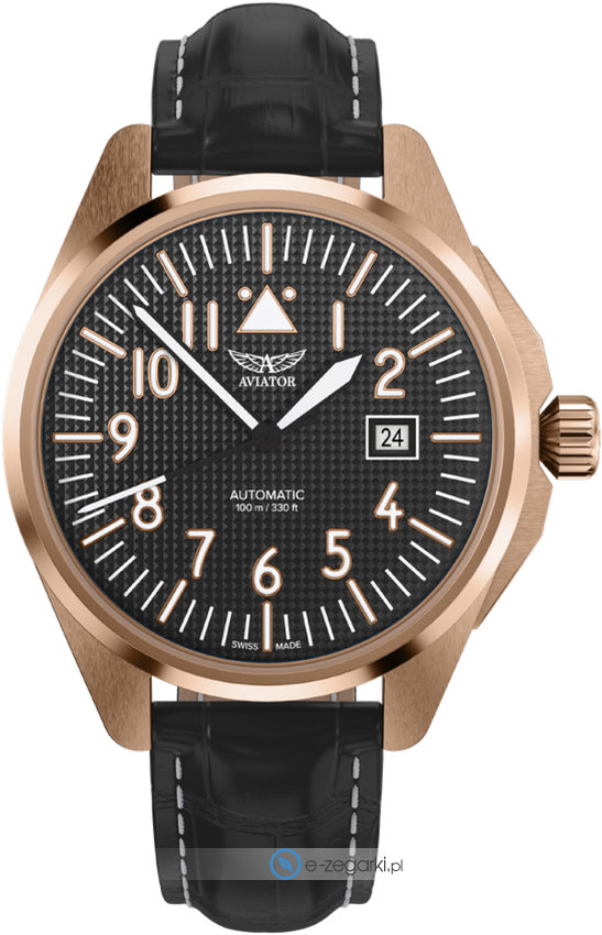 Swiss Made - Aviator. To musi budzić dumę oraz unikalność, takie właśnie są zegarki Aviator. Ta szwacjarska marka czasomierzy całym swoim charakterem oddaje się lotnictwu. To właśnie samotoloty są najważniejszą myślą przewodnią przy projektowaniu oraz produkcji zegarków. Oczywiście tworzywa wykorzystane do produkcji czasomierzy są najwyższej możliwej jakości, nie może być tu miejsca na wyjątki w końcu samolot nie wybacza omyłek. Przy tworzeniu zegarków Aviator każdorazowo brane są pod uwagę przeżycia byłych i aktualnych pilotów oraz entuzjastów lotnictwa właśnie po to, aby zegarki Aviator całą swoją naturą oddawały swój podniebny styl. Gdy przyjrzymy się indeksom, cyfrom oraz innym szczegółom na tarczy lub deklu zegarka nie trudno dostrzec akcenty pochodzące prosto z zegarów lub innych tematów lotniczych. Współczesne wzornictwo nawiązujące linią do danej kolekcji dokładnie oddaje niezwykłość brandu na tle zegarków innych producentów. Jako autoryzowany przedstawiciel marki w Polsce gwarantujemy sprzedaż oryginalnych zegarków objętych programem gwarnacyjnym producenta.