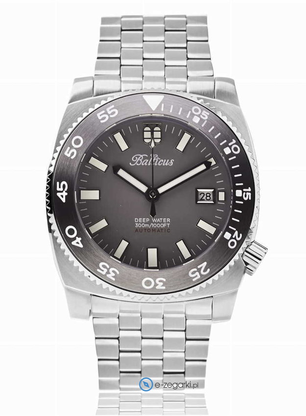 Męski zegarek BLT-DW-GR z serii Balticus Deep Water marki Balticus to połączenie estetyki oraz oryginalnych mechanizmów. Atrakcyjny wygląd czasomierza uzyskano m.in. poprzez tarczę w kolorze ciemnym. Godzina pokazywana jest w sposób analogowy co bez trudu pozwala ją odczytać. Koperta została ozdobiona kolorem srebrnym szeroka jest na 42 mm oraz ma grubość 14 mm - ma okrągły kształt.