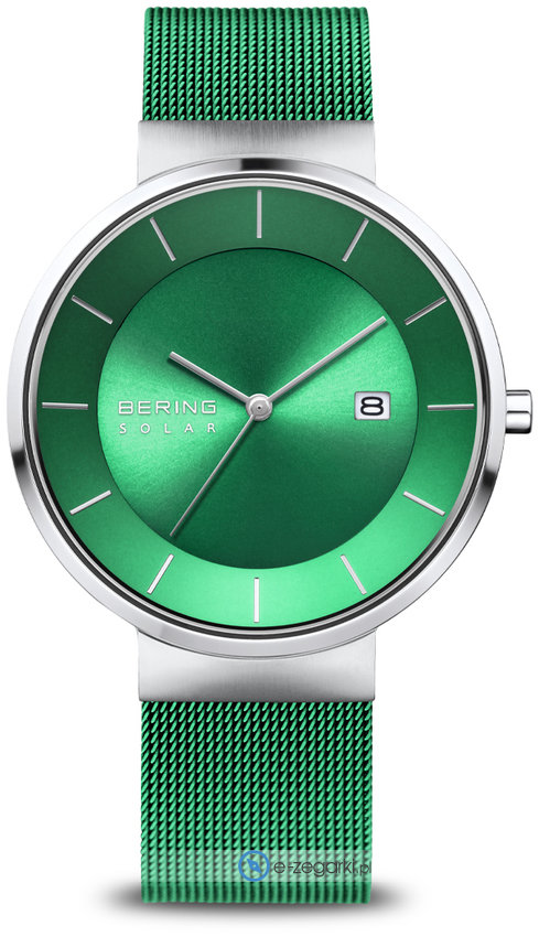 Model 14639-CHARITY marki Bering to stylowy zegarek naręczny męski, który posiada ciekawe rozwiązania oraz funkcje. Niestereotypowy wygląd zegarka uzyskano m.in. poprzez tarczę w kolorze zielonym. Zegarek ten pokazuje aktualny czas w formacie analogowym dzięki temu odczyt jest intuicyjny. Koperta w odcieniach koloru srebrnego szeroka jest na 39 mm oraz ma grubość 9 mm - posiada okrągły kształt.