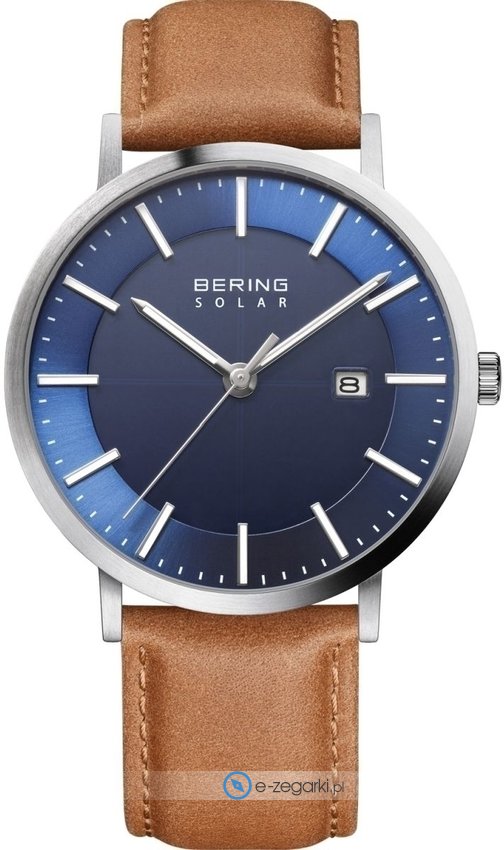 Model męski 15439-507 marki Bering należy do rodziny Bering Solar. Styl zapewnia wysokiej klasy cyferblat w kolorze niebieskim. Godzina zaprezentowana jest w sposób analogowy co niezmiernie łatwo pozwala ją odczytać. Koperta w odcieniach koloru stalowego szeroka jest na 39 mm oraz ma grubość 9 mm - cechuje się okrągłym kształtem.