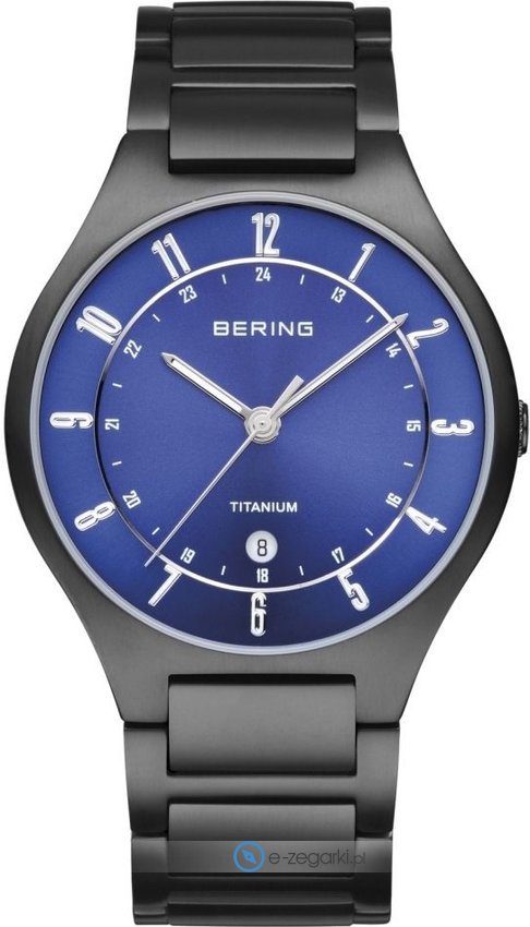 Zegarek 11739-727 marki Bering to gustowny zegarek naręczny męski, który jest wyposażony w pomysłowe rozwiązania oraz funkcje. Model ten jest z serii Zegarki Titanium. Charakterystyczny wygląd czasomierza osiągnięto dzięki tarczy w kolorze granatowym. Koperta szeroka jest na 39 mm oraz ma grubość 8 mm - ma okrągły kształt.