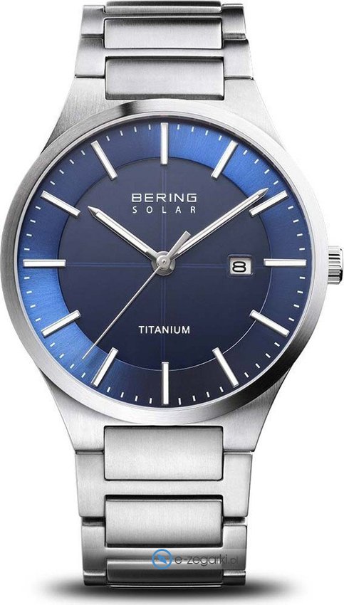 Model męski 15239-777 z serii Bering Titanium marki Bering. Tarcza zegarka jest w kolorze granatowym. Pokazana metodą analogową aktualna godzina jest czytelna i szybka do sprawdzenia. Koperta w odcieniach koloru stalowego szeroka jest na 39 mm oraz ma grubość 10 mm - w kształcie okrągłym.