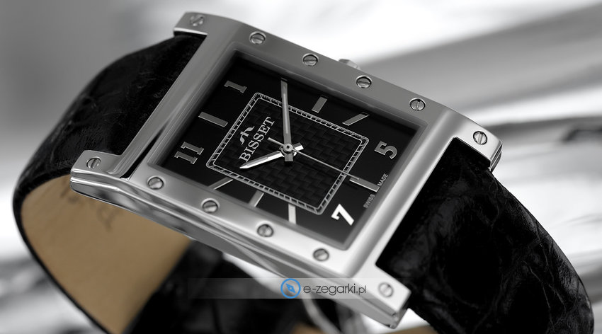 Model BSCC81SMBX marki Bisset to elegancki zegarek naręczny męski, który wyposażono w pomysłowe rozwiązania i funkcje. Styl zapewnia wysokiej jakości cyferblat w kolorze czarnym. Aktualna godzina pokazywana jest w sposób analogowy co niezmiernie łatwo pozwala ją odczytać. Koperta w odcieniach koloru stalowego - ma prostokątny kształt.