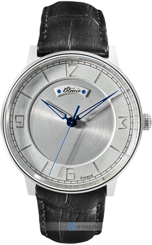Zegarek męski Polan 1 marki Błonie to dobra propozycja dla osób ceniących sobie dbałość o detale a także sprawne funkcjonowanie mechanizmów. Aktualna godzina zaprezentowana jest w sposób analogowy co intuicyjnie pozwala ją odczytać. Koperta w odcieniach koloru srebrnego szeroka jest na 39 mm oraz ma grubość 12 mm - w kształcie okrągłym.