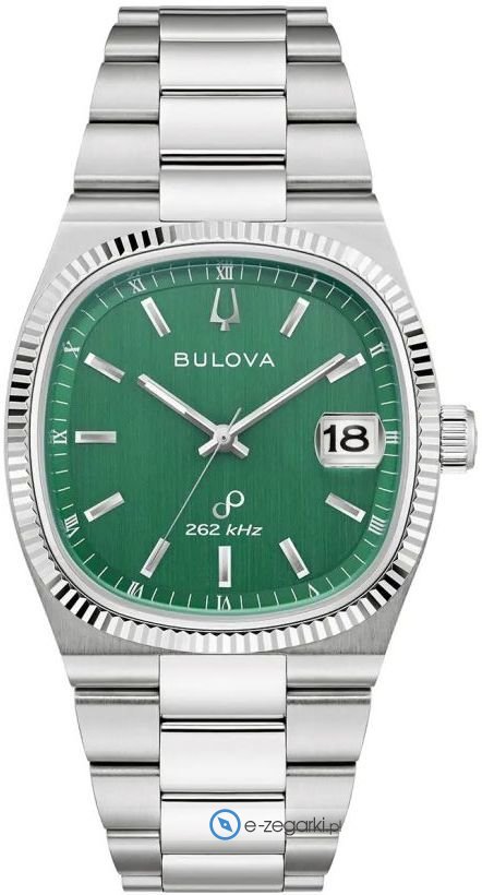 Zegarek męski 96B439 marki Bulova to dobra pozycja dla osób ceniących sobie dbałość o szczegóły a także sprawne działanie mechanizmów. Wysokiej jakości tarczę zegarka pokryto zielonym kolorem. Zegarek ten pokazuje godzinę w formacie analogowym dzięki temu odczyt jest bezproblemowy. Koperta jest w kolorze srebrnym szeroka jest na 38 mm.