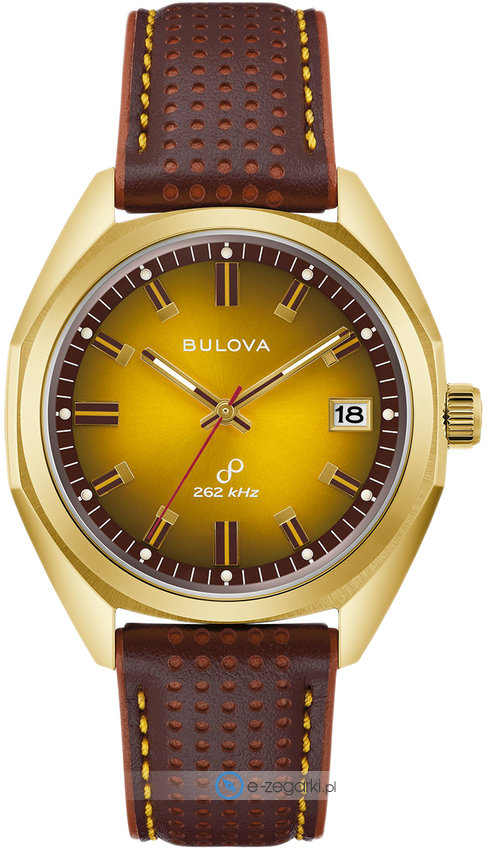 Zegarek męski 97B214 marki Bulova to stylowe połączenie funkcjonalności i modnego wzornictwa. Niestereotypowy wygląd zegarka uzyskano m.in. poprzez cyferblat w kolorze złotym. Godzina zaprezentowana jest w sposób analogowy co niezmiernie łatwo pozwala ją odczytać. Koperta w barwach koloru złotego szeroka jest na 40 mm - w kształcie okrągłym.
