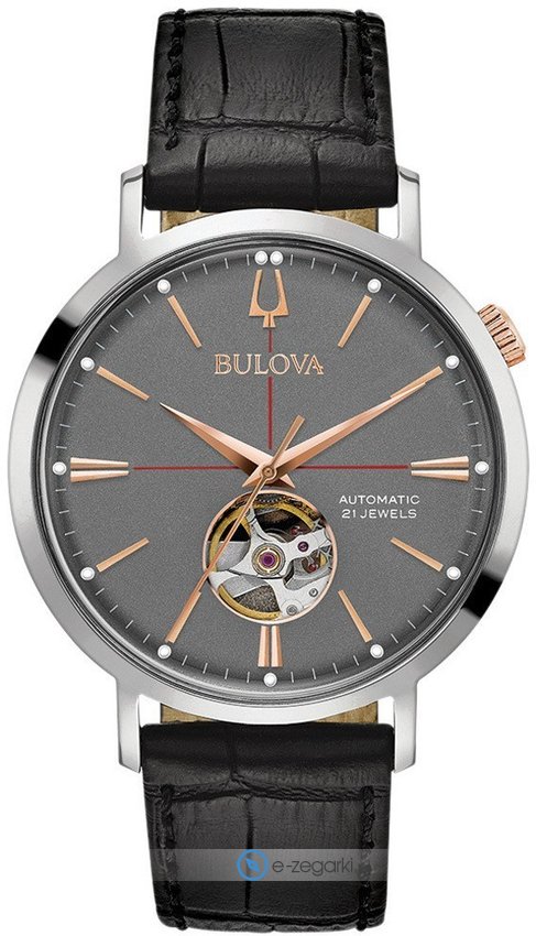 Model 98A187 nakręca się za pośrednictwem ruchów ręki za pośrednictwem wysokiej klasy mechanizmowi automatycznemu. Pasek czarnego koloru wykonany jest z wysokiej jakości skóry gwarantującej trwałość i komfort użytkowania.