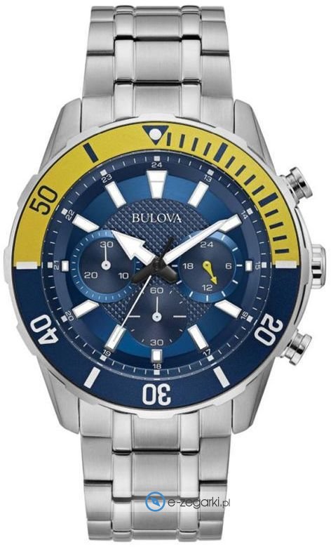 Zegarek męski 98A245 marki Bulova to dobra pozycja dla osób ceniących sobie dbałość o szczegóły a także bezawaryjne zachowanie mechanizmów. Charakterystyczny wygląd zegarka uzyskano także dzięki tarczy w kolorze niebieskim. Pokazana metodą analogową aktualna godzina jest czytelna i szybka do sprawdzenia. Koperta jest ozdobiona kolorem niebieskim szeroka jest na 44 mm oraz ma grubość 11 mm - posiada okrągły kształt.