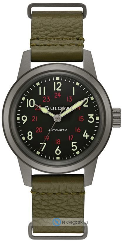 Model 98A255 nakręca się za pośrednictwem ruchów ręki dzięki wysokiej klasy mechanizmowi automatycznemu. Pasek jest w kolorze zielonym wykonany jest z wysokiej jakości skóry gwarantującej trwałość i wygodę noszenia.
