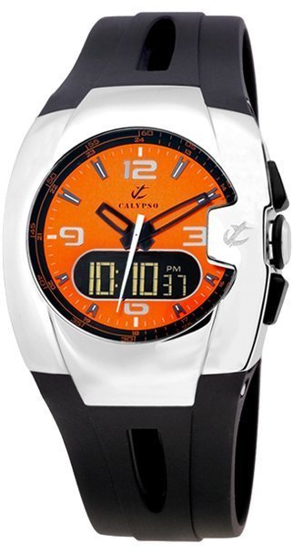 Zegarek męski K5330-1 marki Calypso to dobre połączenie funkcjonalności a także modnego designu. Ciekawy wygląd czasomierza osiągnięto m.in. poprzez cyferblat w kolorze pomarańczowym. Zaprezentowana metodą analogowo - cyfrową bieżąca godzina jest czytelna i łatwa do odczytania.