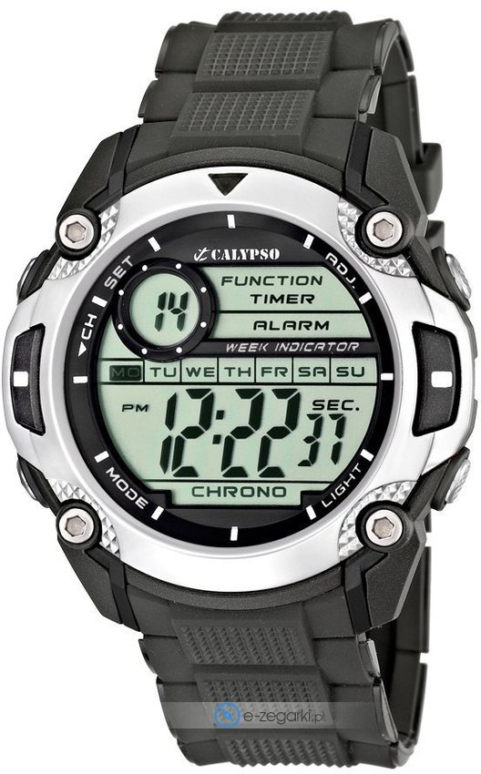 Model K5577-1 marki Calypso to elegancki zegarek naręczny męski, który jest wyposażony w ciekawe rozwiązania i funkcje. Stylu dodaje wysokiej jakości tarcza w kolorze czarnym. Zegarek ten prezentuje aktualny czas w formacie cyfrowym dzięki czemu odczyt jest bezproblemowy. Koperta szeroka jest na 47 mm - posiada okrągły kształt.