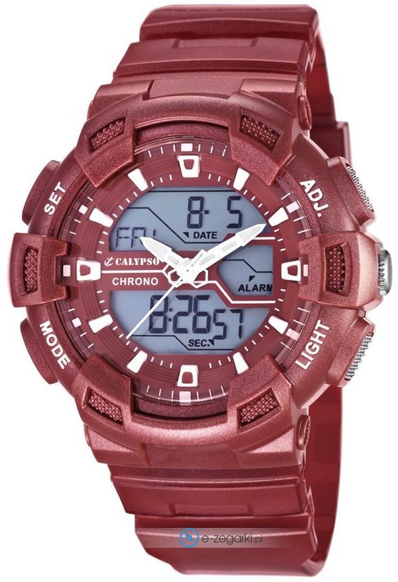 Męski zegarek Calypso K5579-5 to zegarek, który dzięki swemu wzornictwu zawsze będzie prezentował się dobrze. Styl zapewnia wysokiej jakości tarcza w kolorze różowym. Aktualna godzina pokazywana jest w sposób analogowo - cyfrowy co niezmiernie łatwo pozwala ją odczytać. Koperta szeroka jest na 51 mm - wyróżnia się okrągłym kształtem.
